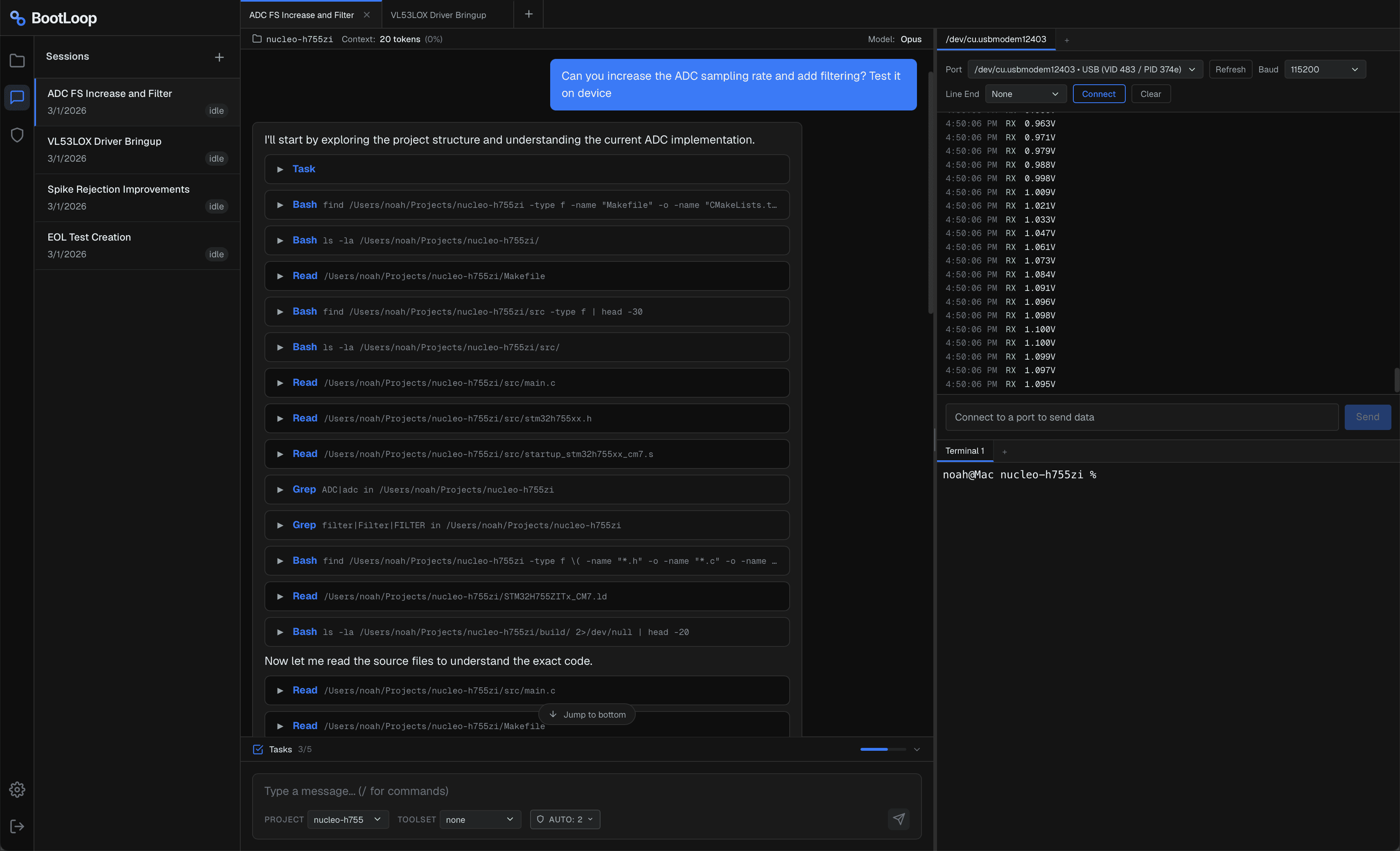 BootLoop learns your project conventions, configs, and coding patterns. Context that persists across sessions, not just conversations.